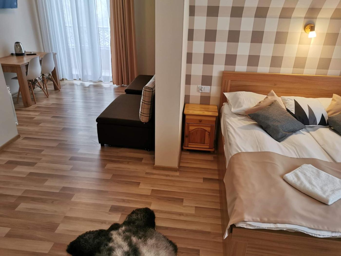 Pokój Czteroosobowy. The spacious quadruple room features a wardrobe, an electric kettle, as well as a private bathroom boasting a shower and a hairdryer. The quadruple room offers a sofa, parquet floors, heating, a flat-screen TV, as well as garden views. The unit has 3 beds and 1 futon. Pokój Czteroosobowy - 5 osobowy. Powierzchnia pokoju ok.: 41 mkw.