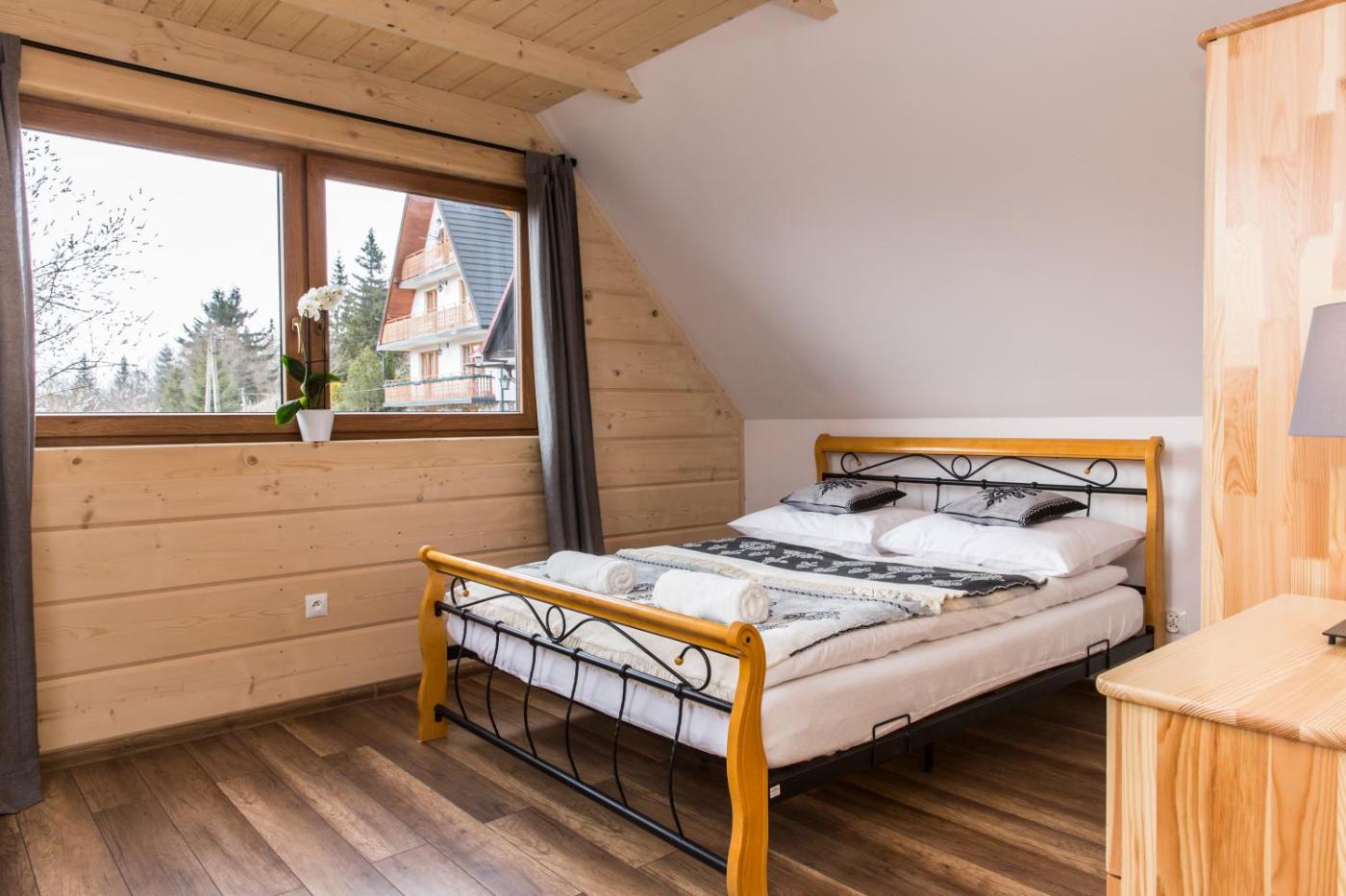 Dom z 2 sypialniami. This holiday homes special feature is the fireplace. This holiday home comprises 1 living room, 2 separate bedrooms and 1 bathroom with a shower and a hairdryer. The well-fitted kitchenette features a stovetop, a refrigerator, kitchenware and a microwave. The holiday home provides a flat-screen TV, a washing machine, a dining area, a wardrobe as well as mountain views. The unit offers 4 beds. Dom wakacyjny - 6 osobowy. Powierzchnia pokoju ok.: 90 mkw.