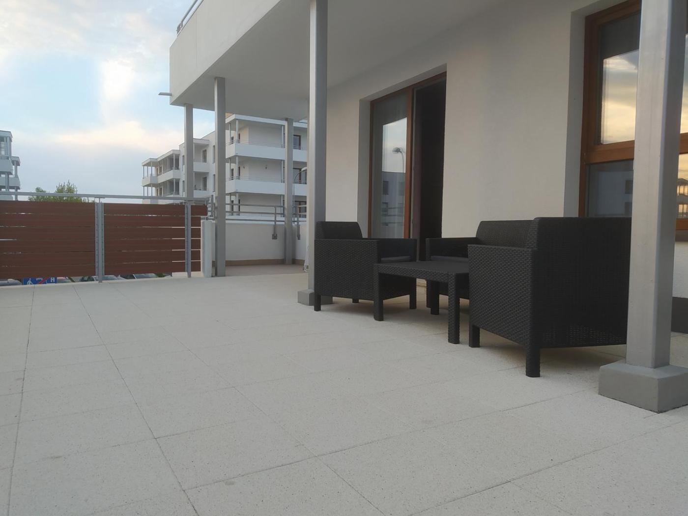 Apartament typu Junior Suite z tarasem. Featuring a private entrance, this suite is comprised of 1 living room, 1 separate bedroom and 1 bathroom with a walk-in shower and a hairdryer. Meals can be prepared in the kitchen, which is fitted with a stovetop, a refrigerator, kitchenware and an oven. This suite features a washing machine, a tea and coffee maker, a flat-screen TV with streaming services and a terrace. The unit offers 2 beds. Apartament typu Suite - 4 osobowy. Powierzchnia pokoju ok.: 37 mkw.
